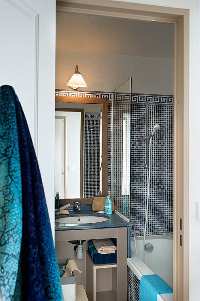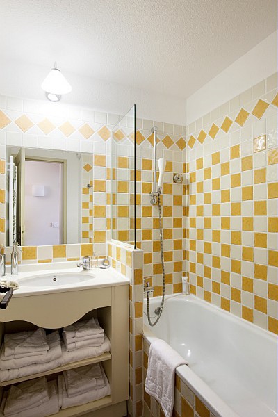 Studio 5 personnes de 22m² environ comprenant un séjour avec 2 banquettes lits simples dont 1 avec 1 lit gigogne, une cabine dans l'entrée avec 2 lits superposés, une salle de bain avec baignoire ou douche, des toilettes et un coin cuisine, une terrasse ou balcon.A noter : Le couchage en hauteur ne convient pas aux enfants de moins de 6 ans.