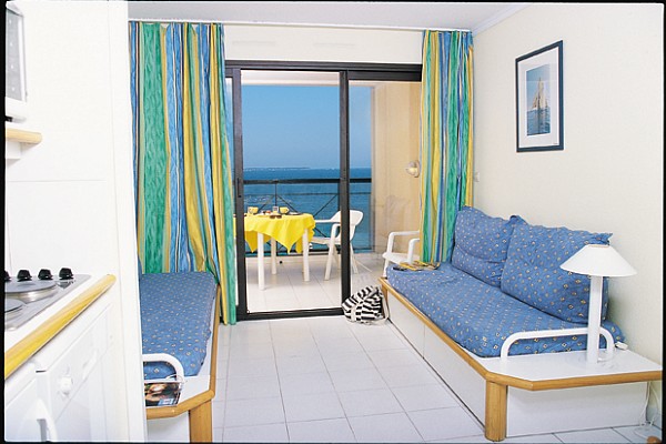 Studio 4/5 personnes de 22 à 26m² comprenant un séjour avec 2 banquettes lits simples dont 1 avec 1 lit gigogne, une cabine dans l'entrée avec 2 lits superposés, une salle de bain avec douche ou baignoire, des toilettes, une kitchenette, une terrasse ou un balcon.A noter : Le couchage en hauteur ne convient pas aux enfants de moins de 6 ans.