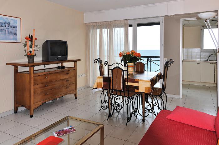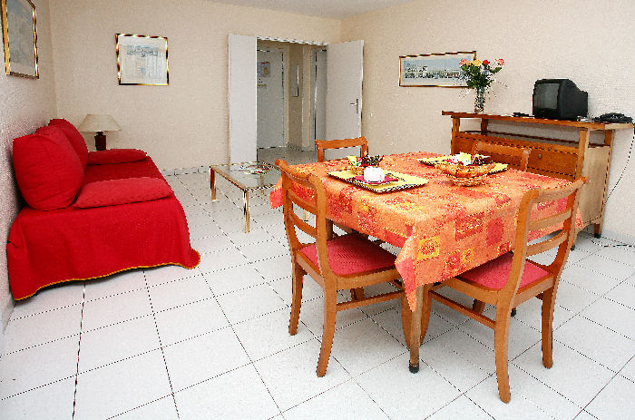 Appartement de 2 pièces pour 4 personnes d'environ 45m², composé d'un séjour avec un canapé convertible double, d'une chambre avec deux lits simples, d'une cuisine équipée, d'une salle de bain avec des WC séparés. Balcon.