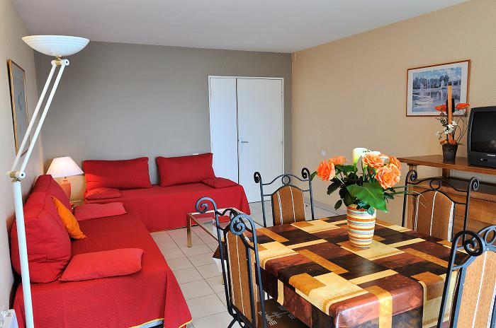 Studio pour 2 personnes d'environ 30m² composé d'un canapé convertible double dans le séjour, d'une kitchenette équipée et d'une salle de bain avec des WC. Balcon.