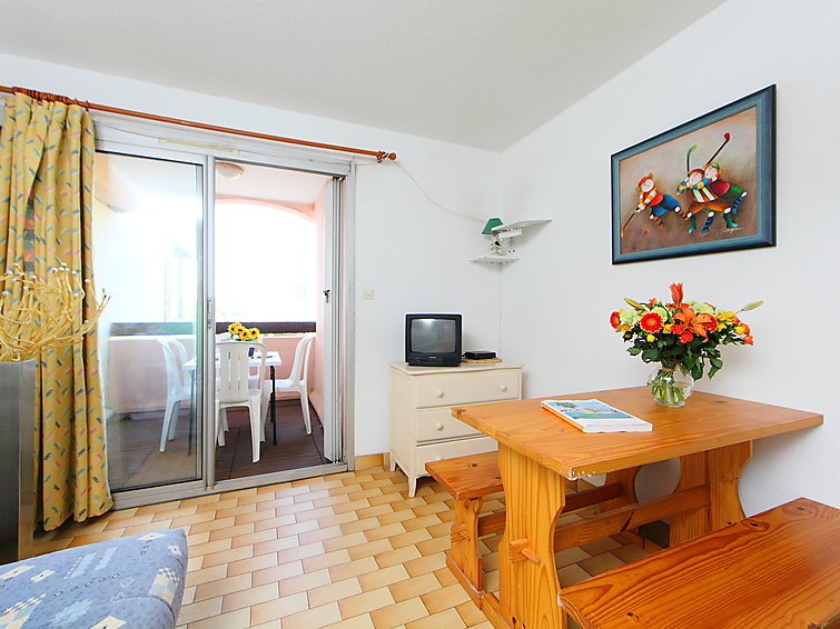 Apt 2 pièces 25 m2 au 2ème étage: séjour/salle à manger avec TV, sortie sur la loggia. 1 chambre avec 1 grand-lit. 1 petite chambre avec 1 x 2 lits superposés. Cuisine ouverte (2 plaques de cuisson, mini-four, lave-vaisselle, four micro-ondes). Douche/WC. Chauffage électrique. Place de parking. Veuillez noter: 1 animal domestique toléré. Loggia, 3 m2, situation sud. Meubles de jardin. Vue Port.