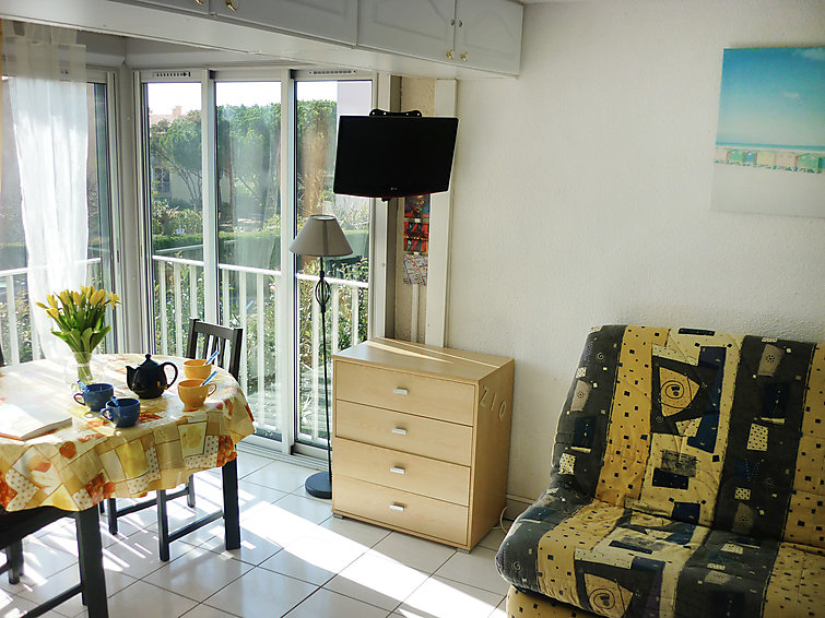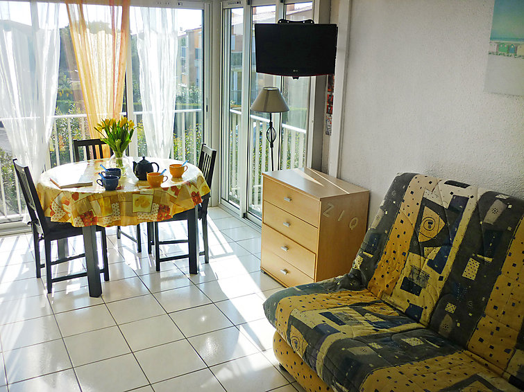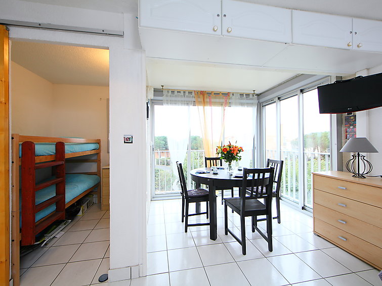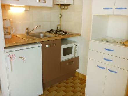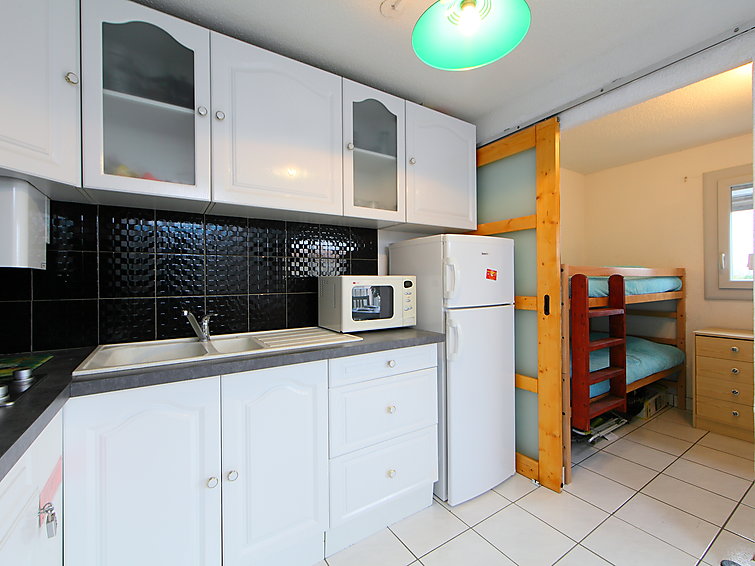 Pour avoir plus de détails et réserver cet hébergement, choisissez une date ci-dessus et cliquez sur voir l'offre ! Vous serez redirigé vers le site proposant la location.Studio 27 m2 au 1er étage. Rénové en 2013, aménagement confortable: séjour avec 1 divan-lit (140 cm), TV (écran plat). Sortie sur la loggia. Cabine avec 1 x 2 lits superposés. Coin cuisine (2 plaques de cuisson, four micro-ondes, congélateur). Douche, WC séparé. Place de parking No 78. Veuillez noter: détecteur de fumée.