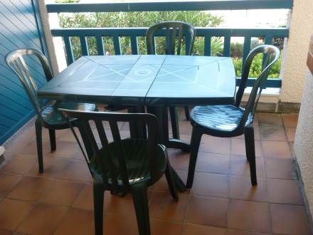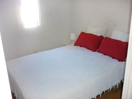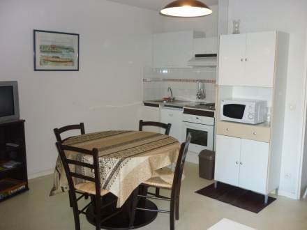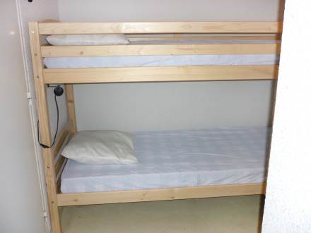 "LE GENOIS", apt 2 pièces 32 m2 au 1er étage: séjour avec 1 divan-lit (130 cm, longueur 190 cm), table pour les repas et TV. Sortie sur la terrasse. Entrée avec 1 x 2 lits superposés (80 cm, longueur 190 cm). 1 chambre avec 1 lit (140 cm, longueur 190 cm). Coin cuisine (2 plaques de cuisson, four, four micro-ondes). Douche, WC séparé.