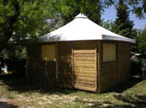 Pour avoir plus de détails et réserver cet hébergement, choisissez une date ci-dessus et cliquez sur voir l'offre ! Vous serez redirigé vers le site proposant la location.Lodge Toilé Bois Sans Sanitaire 4 Personnes de 16m² composé d'une chambre avec 1 lit 2 personnes , d'une chambre avec 2 lits 1 personne, d'une cuisine. Le logement ne contient ni salle de bains ni WC.