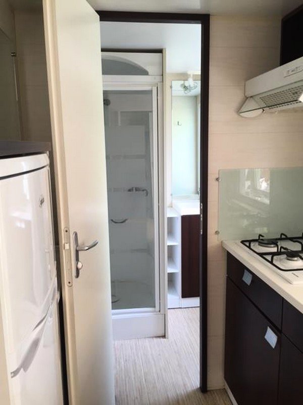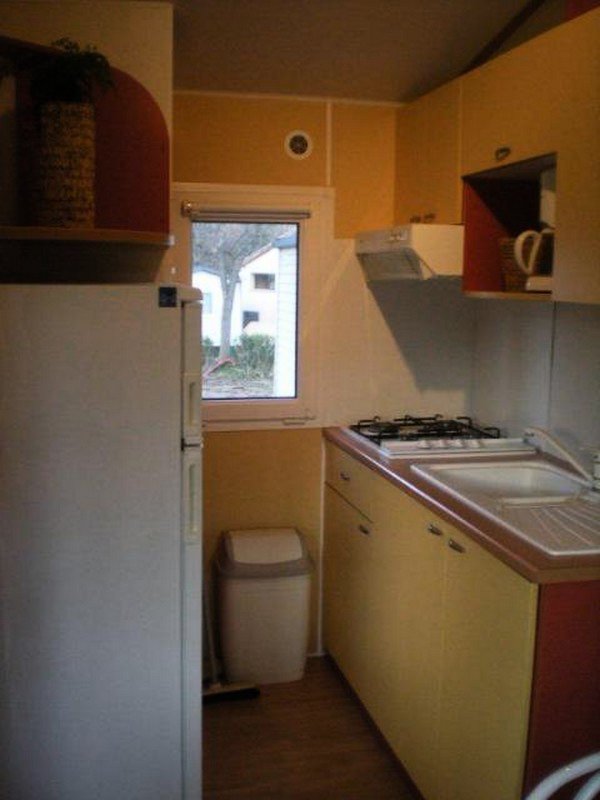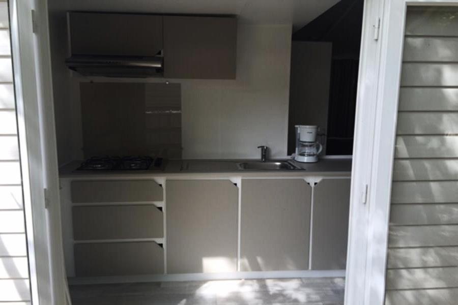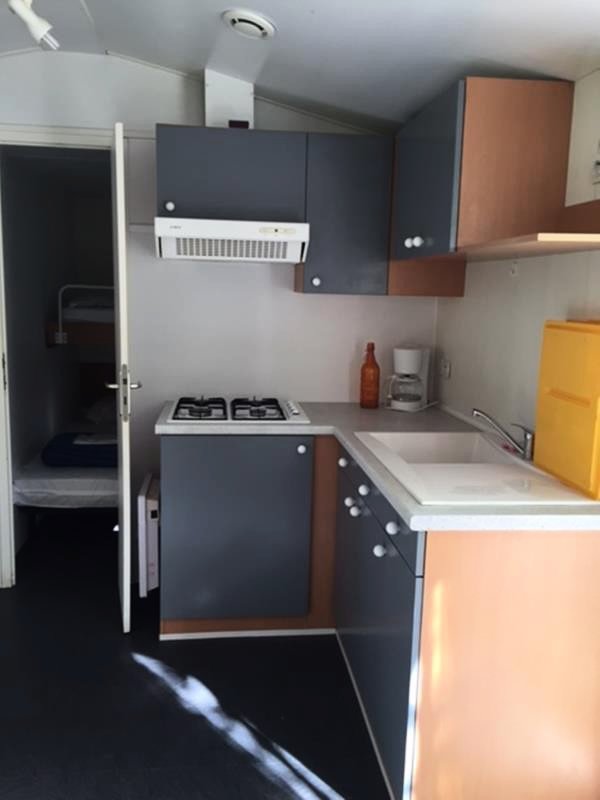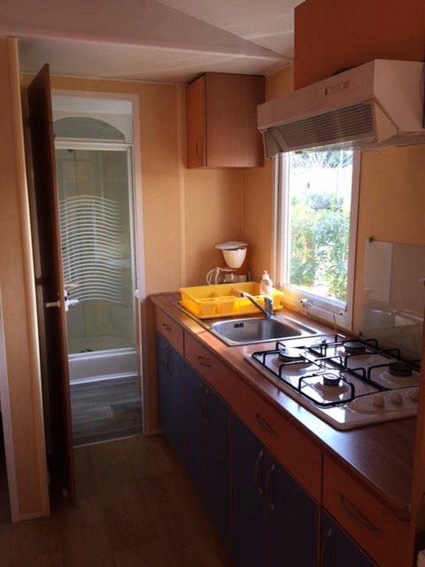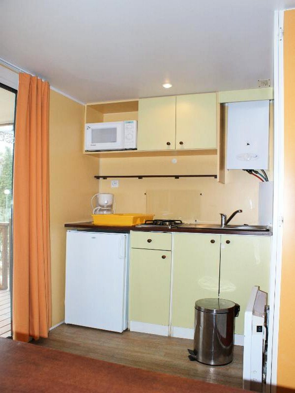 Le Mobil Home comprend une cuisine avec un évier, 1 réfrigérateur, 1 plaque de cuisson 2 feux, un micro-onde, 1 cafetière électrique. Le logement dispose également d'une terrasse couverte.