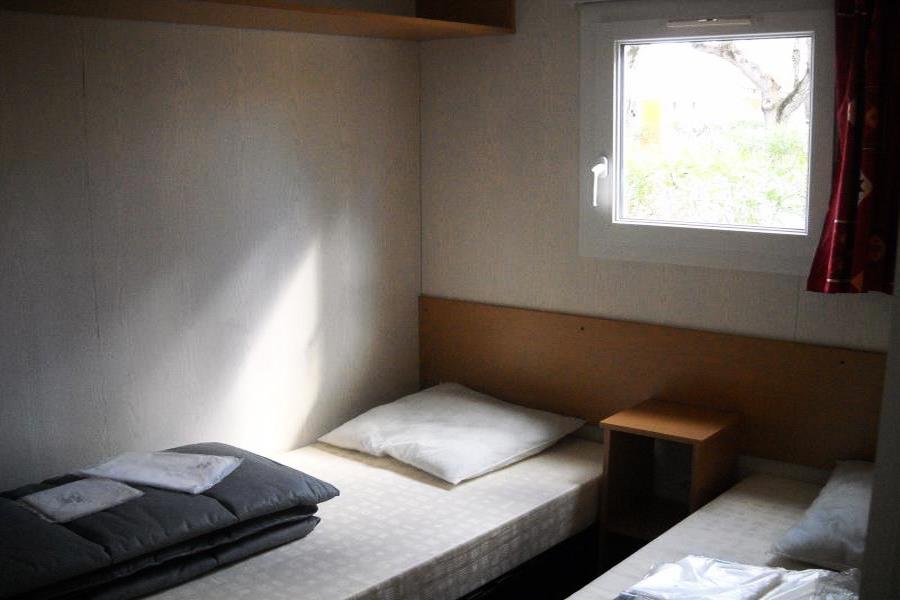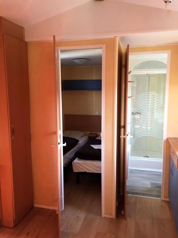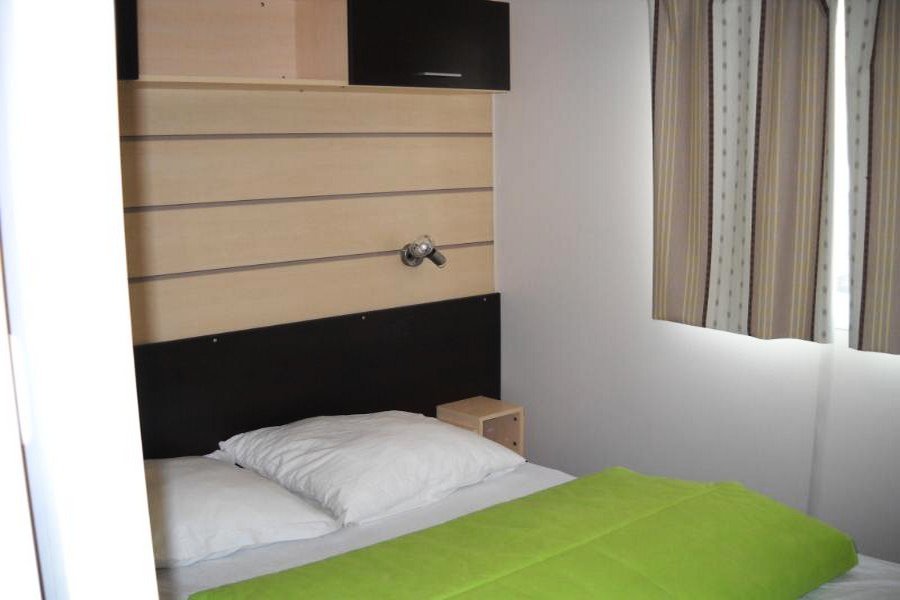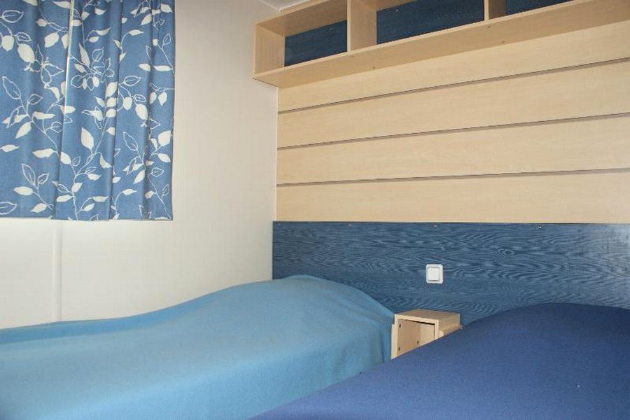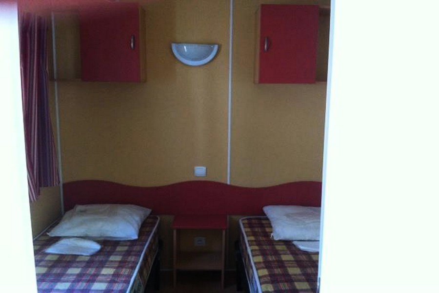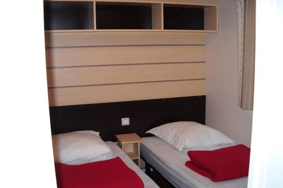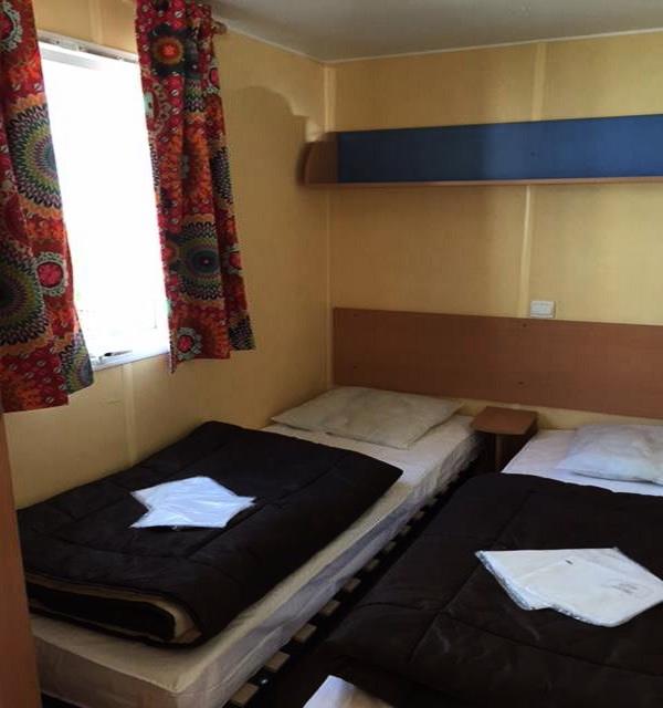 Classic Eco + Louisiane 4/5 Personnes de 28m² composé d'une chambre avec un grand lit, d'une chambre avec 2 jumeaux et un lit superposé, d'une cuisine équipée, d'une salle de bains avec douche, lavabo et WC séparé.