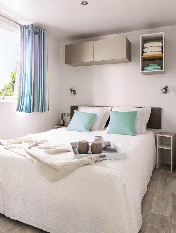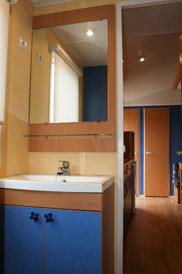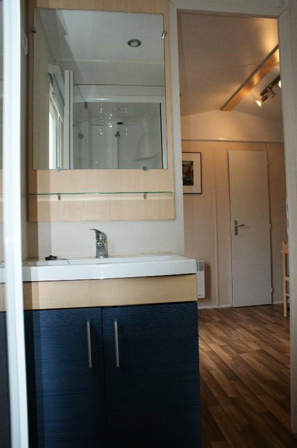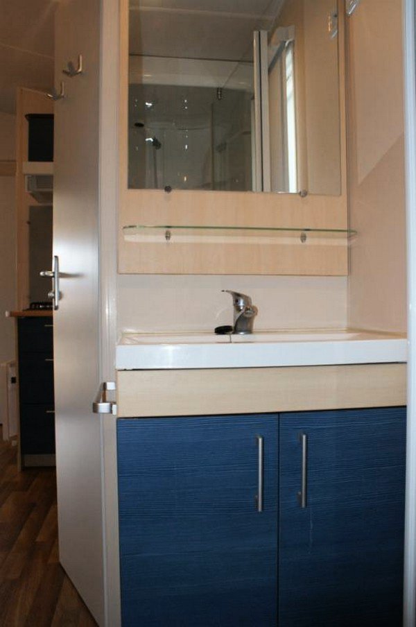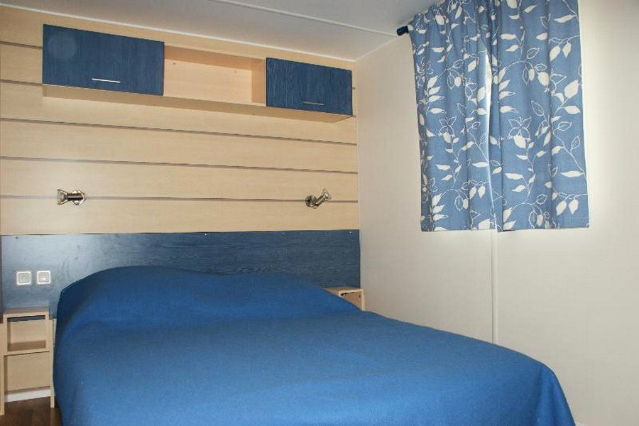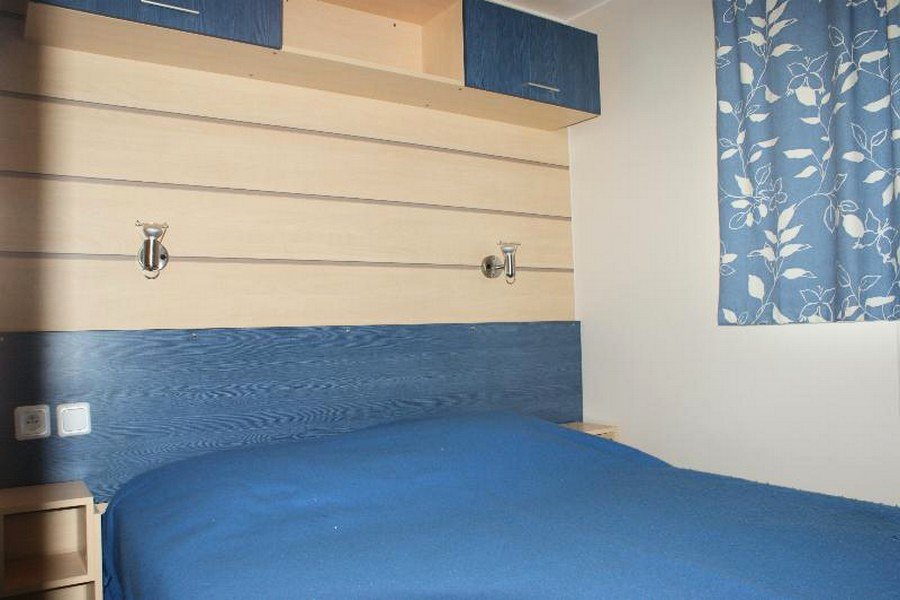 Classic Eco + Louisiane 4/5 Personnes de 28m² composé d'une chambre avec un grand lit, d'une chambre avec 2 jumeaux et un lit superposé, d'une cuisine équipée, d'une salle de bains avec douche, lavabo et WC séparé.