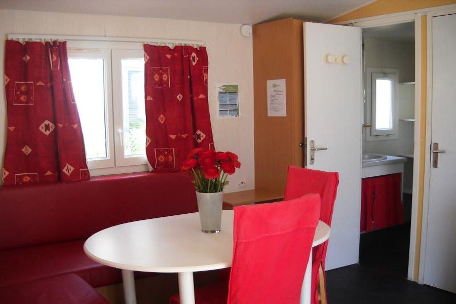 Pour avoir plus de détails et réserver cet hébergement, choisissez une date ci-dessus et cliquez sur voir l'offre ! Vous serez redirigé vers le site proposant la location.Mobil Home Grand Confort Cottage 4/6 Personnes de 28m² composé d'une chambre avec un lit 2 personnes, d'une chambre avec 2 lits 1 personne, d'une banquette lit 2 personnes, d'une cuisine équipée, d'une salle de bains avec douche et WC séparé.