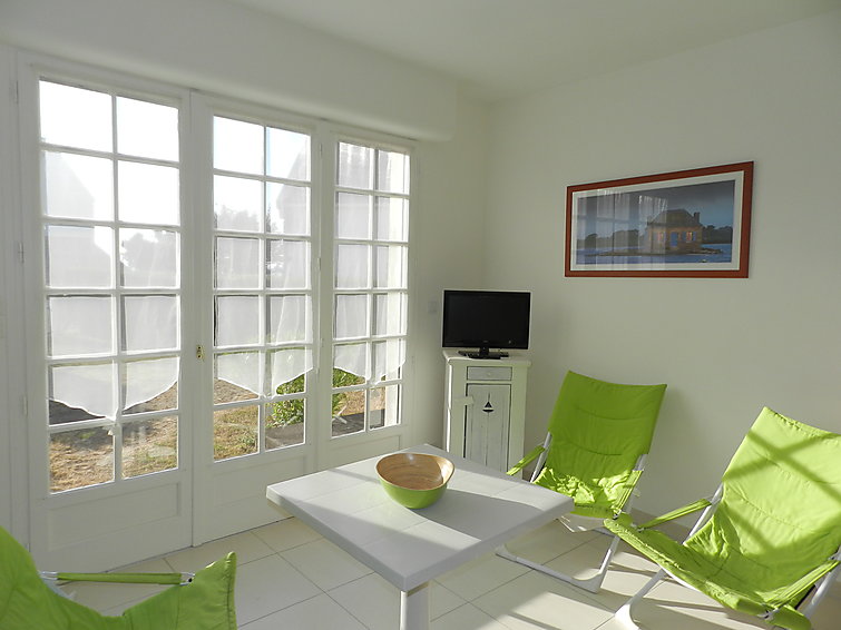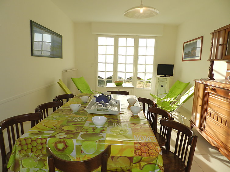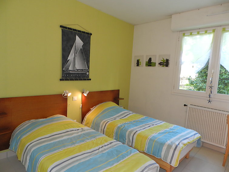 - Bretagne - Appartements classiquesMaison à 2 apts "Loc Argos". Quartier résidentiel, à 200 m de la mer, à 200 m de la plage. A usage privé: terrain 400 m2 (clôturé), jardin pelouse, place de parking sur le terrain. Magasins, supermarché, restaurant 700 m. Ecole de voile 100 m....
