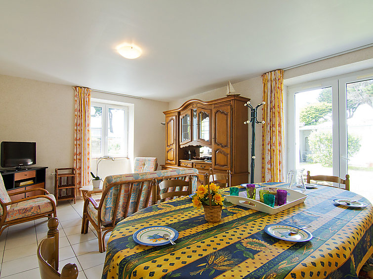 - Bretagne - Appartements classiquesMaison à 2 apts "Mer et Soleil". Dans la localité, à 2.5 km du centre, à 70 m de la mer. En commun: jardin (clôturé). Barbecue, place de parking sur le terrain. Magasins 2.5 km, restaurant 2.5 km, gare ferroviaire "Auray" 18 km. Terrain de golf (18...