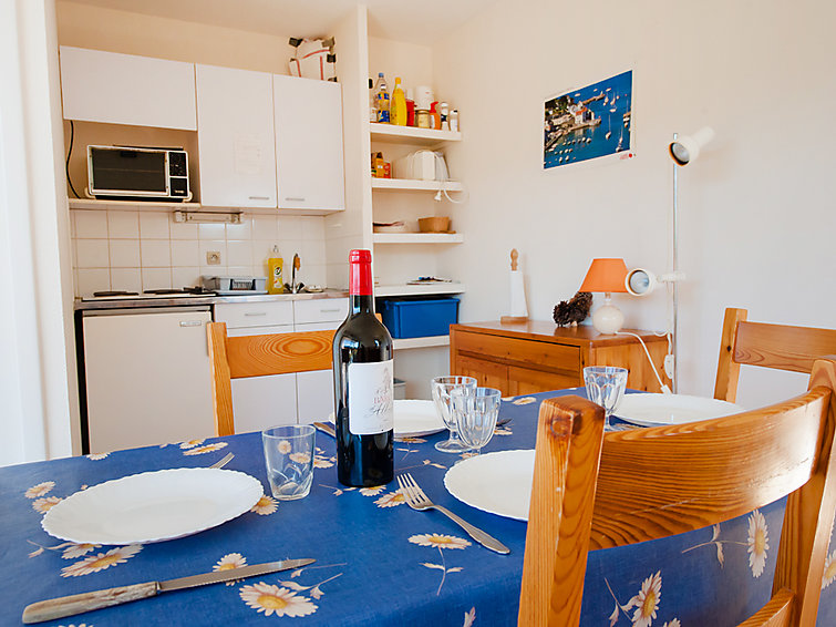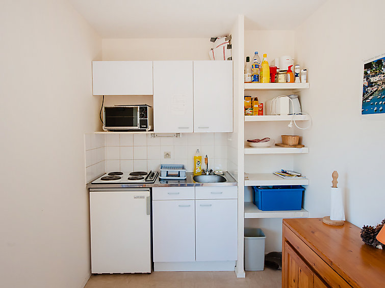 Apt 2 pièces 25 m2 au 1er étage. Bien convenant à 2 adultes + 2 enfants. Aménagement fonctionnel et agréable: séjour/salle à manger avec 1 divan-lit double (140 cm), TV. Sortie sur le balcon, orientée sud et orientée est. 1 chambre avec 2 lits. Coin cuisine (4 plaques de cuisson, four, cafetière électrique). Douche, WC séparé. Chauffage électrique. Balcon. Mobilier de balcon. Vue sur les alentours.