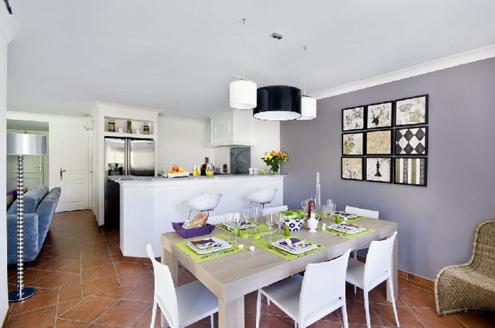 Cuisine équipée : plaques vitrocéramiques, réfrigérateur américain, four traditionnel, four micro-ondes, lave-vaisselle, petit électroménager. Télévision LCD dans le salon avec réception de chaînes étrangères, lecteur DVD, chaîne Hi-Fi, accès Internet haut débit. Lave-linge, sèche-linge, fer et planche à repasser.Climatisation réversible.