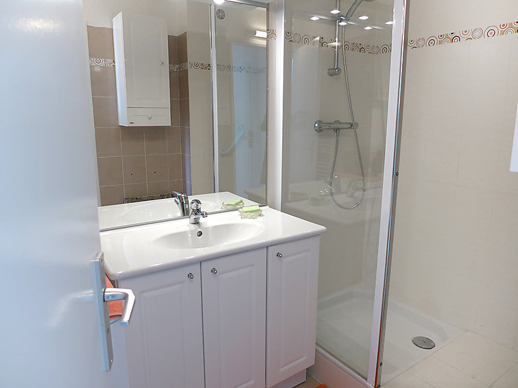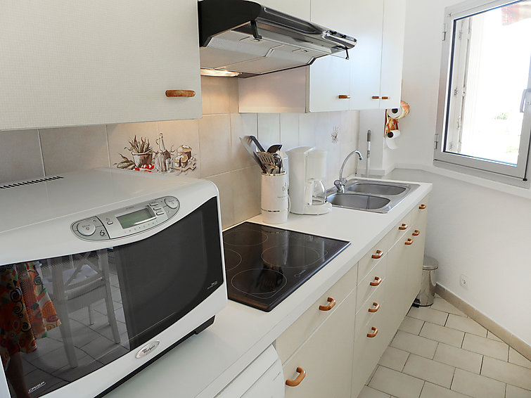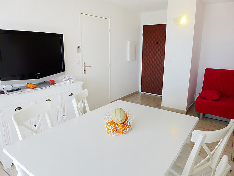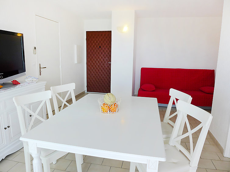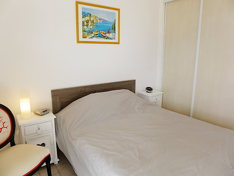 Apt 2 pièces 39 m2 au 2ème étage, situation sud-est, clair, aménagement fonctionnel et confortable: séjour/salle à manger avec 1 divan-lit double (140 cm, longueur 200 cm), TV (écran plat), DVD et air-conditionné. Sortie sur la terrasse. 1 chambre avec 1 grand-lit (140 cm, longueur 190 cm), air-conditionné. Sortie sur la terrasse. Petite cuisine (lave-vaisselle, 4 plaques vitrocéramique, congélateur, combiné micro-ondes). Douche, WC séparé. Chauffage électrique. Terrasse 11 m2, couverte. Meubles de terrasse. Très belle vue sur la mer. A disposition: lave-linge. Garage No 14, hauteur 195 cm, largeur 220 cm. Longueur 5 m.
