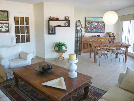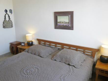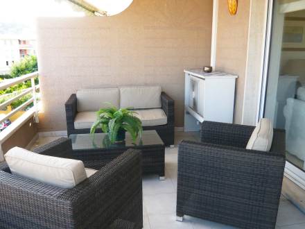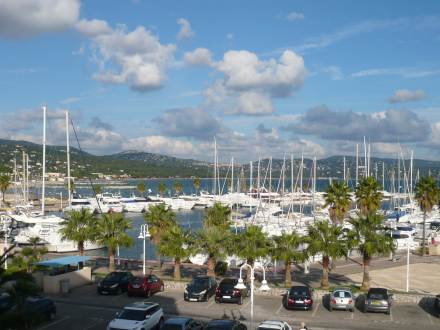 Apt 3 pièces 65 m2 au 2ème étage, situation sud-est, spacieux, aménagement très confortable et de bon goût: séjour/salle à manger avec écran plat, DVD et air-conditionné. Sortie sur la terrasse. 1 chambre avec 1 grand-lit (140 cm, longueur 190 cm). 1 chambre avec 1 grand-lit (160 cm, longueur 190 cm), douche/WC et air-conditionné. Cuisine (four, lave-vaisselle, plaque vitro céramique, four micro-ondes, cafetière électrique). Douche, WC séparé. Chauffage électrique. Terrasse 18 m2, couverte. Meubles de terrasse. Belle vue sur la mer et le port. A disposition: lave-linge, fer à repasser. Place de parking à 300 m. Maximum 1 animal/ chien autorisé. Le parking à proximité est payant de Juin à Septembre. Forfait/jour : 2 ?.