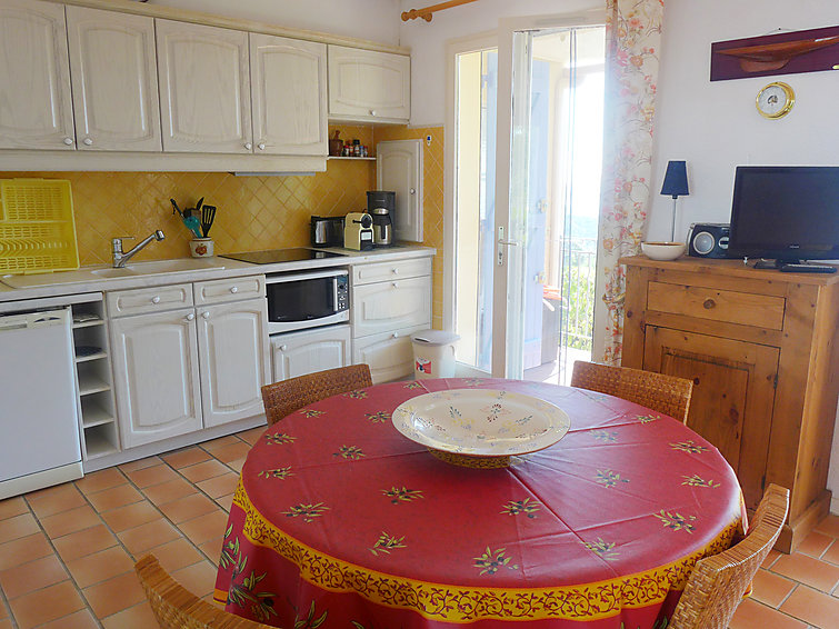 Apt 2 pièces 32 m2, rez-de-chaussée surélevé. Aménagement agréable: séjour/salle à manger avec 1 divan-lit, table pour les repas, TV et écran plat. Sortie sur la terrasse, orientée sud et orientée est. 1 chambre avec 2 lits (80 cm, longueur 200 cm). Cuisine ouverte (lave-vaisselle, 3 plaques à induction, congélateur, cafetière électrique, combiné micro-ondes). Salle de bains, WC séparé. Chauffage électrique. Grande terrasse 34 m2, jardin. Meubles de terrasse, barbecue électrique. Vue panoramique sur la baie. A disposition: lave-linge, fer à repasser. Veuillez noter: TV seulement FR.