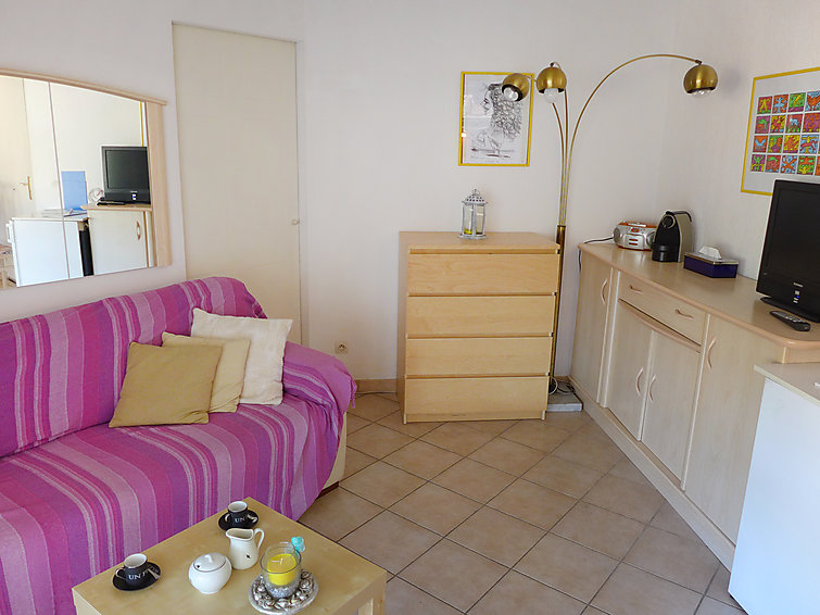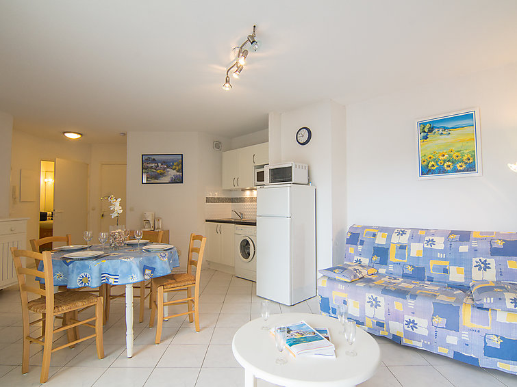 Pour avoir plus de détails et réserver cet hébergement, choisissez une date ci-dessus et cliquez sur voir l'offre ! Vous serez redirigé vers le site proposant la location."Résidence Turquoise", apt 2 pièces 25 m2 au 3ème étage. Aménagement fonctionnel et confortable: séjour avec 1 divan-lit (140 cm, longueur 190 cm), TV. Sortie sur la terrasse. 1 chambre avec porte coulissante avec 1 grand-lit (160 cm, longueur 190 cm). Coin cuisine (mini-four, lave-vaisselle, 4 plaques vitrocéramique, four micro-ondes). Douche, WC séparé. Terrasse 15 m2. Meubles de terrasse. A disposition: lave-linge, fer à repasser. Place de parking No 751. Veuillez noter: TV seulement FR.