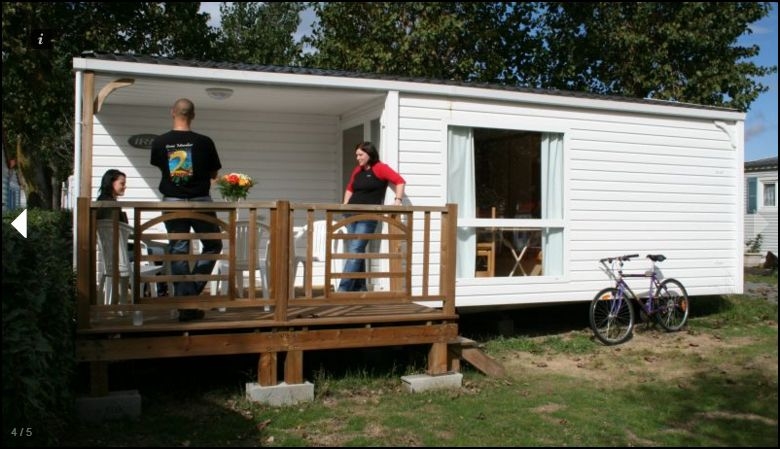 Mobil Home 3 Pièces 4/6 Personnes de 25m² composé d'un coin cuisine équipé, d'un coin salon avec banquette convertible, d'une chambre avec 1 lit double, d'une chambre avec 2 lits simples, d'un coin douche et de WC séparés. Terrasse semi couverte. Attention: La capacité maximum est de 4 adultes et 2 enfants.