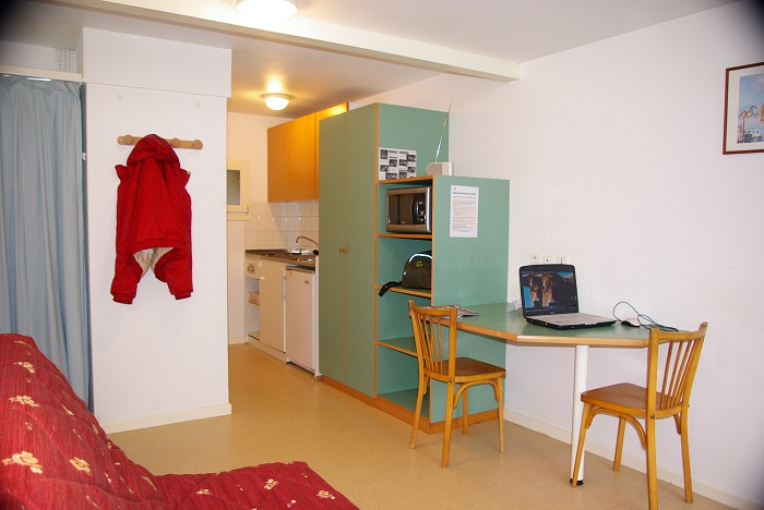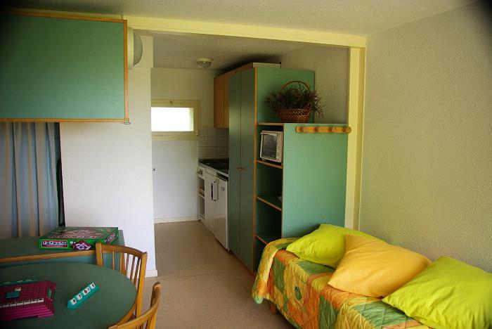 Studio de 19m² pour deux personnes comprenant un coin cuisine, un séjour avec banquette-lit 2 personnes, une salle d'eau avec douche, lavabo et toilettes et une terrasse. Possibilité d'ajouter un lit bébé : sur demande auprès de notre service réservation