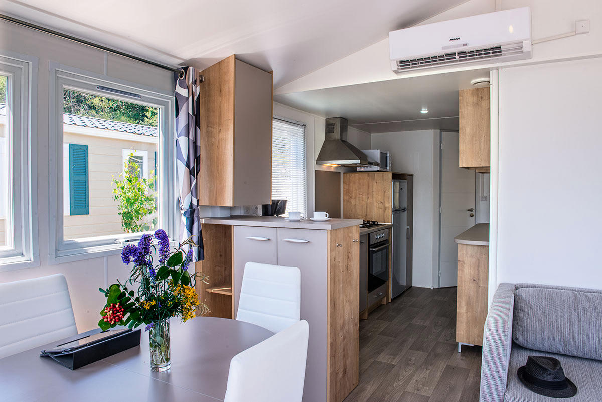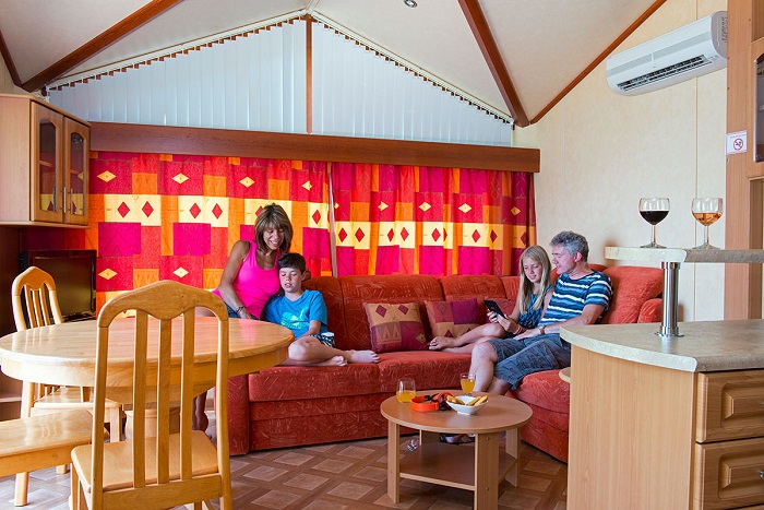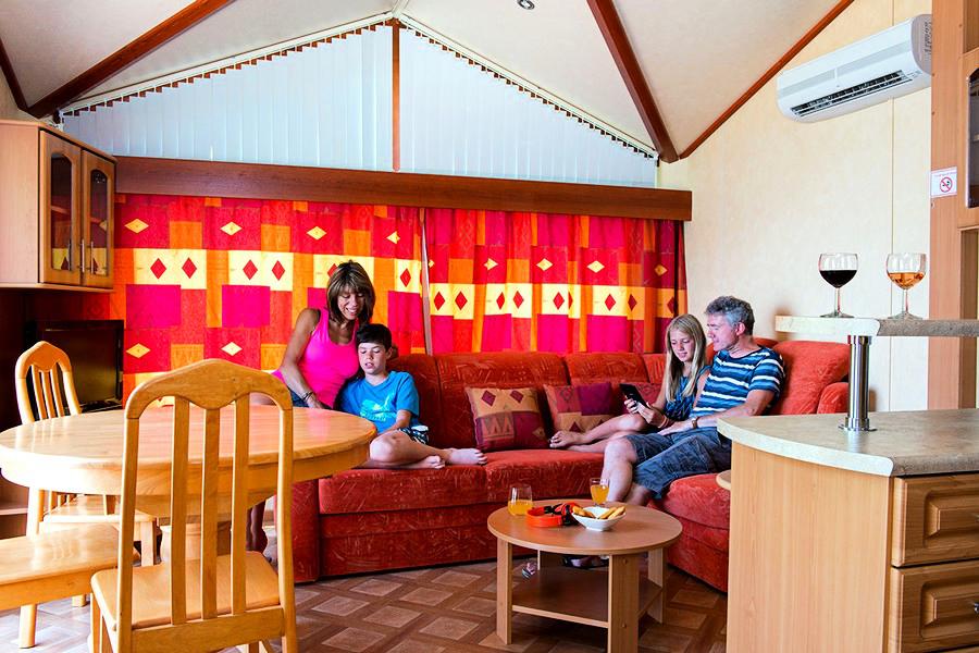 Pour avoir plus de détails et réserver cet hébergement, choisissez une date ci-dessus et cliquez sur voir l'offre ! Vous serez redirigé vers le site proposant la location.Superficie d'environ 36 m². Chalet 3 pièces pour 4/6 personnes entre 36 et 40m² avec : Coin salon avec canapé-lit pour 2 personnes Coin cuisine équipé 1 chambre avec 1 lit double (140x190) 1 chambre avec 2 lits simples (90x190) 1 salle de douche avec WC 1 terrasse A noter : Les tailles de lits mentionnées sont non contractuelles. Il est possible d'avoir de légères différences de tailles selon les modèles de locatifs. La disposition des lits et la décoration peuvent également varier. Le Chalet comprend : Télévision Climatisation/Chauffage Réfrigérateur, micro-ondes, plaques cuisson, cafetière à filtre, ustensiles de cuisine et vaisselle adaptée au nombre de personnes dans le logement 1 salon de jardin Oreillers et couettes fournis pour chaque couchage (draps en option et en supplément)