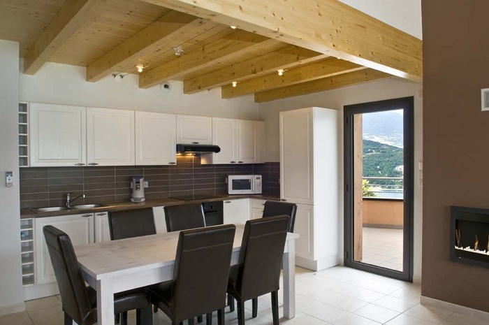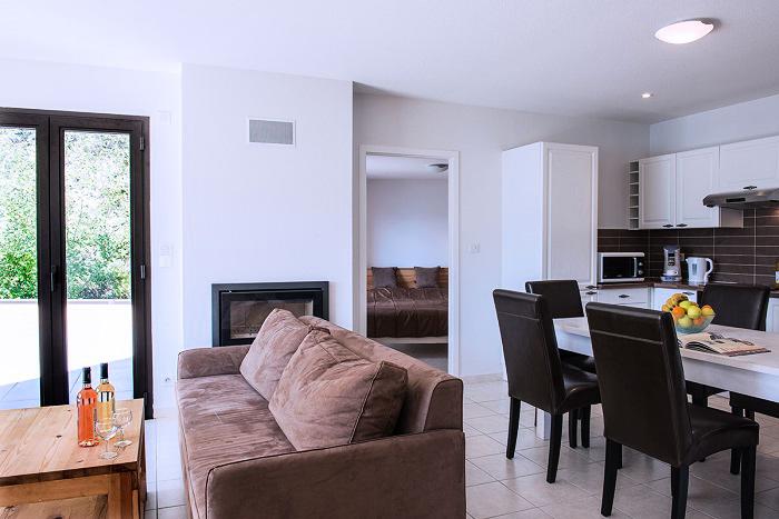 L'appartement comprend une cuisine équipée d'un réfrigérateur - congélateur, de plaques de cuisson, d'un micro-ondes, d'un four traditionnel, d'une machine à café, d'un lave-vaisselle, tous les ustensiles de cuisine et vaisselle. Le séjour inclut une télévision écran plat et possède des stores électriques. La terrasse dispose du mobilier de jardin.
