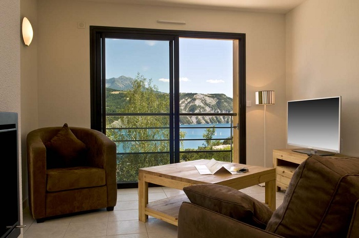Pour avoir plus de détails et réserver cet hébergement, choisissez une date ci-dessus et cliquez sur voir l'offre ! Vous serez redirigé vers le site proposant la location.Village de vacances, idéalement situé, en bordure du Lac de Serre-Ponçon. Avec infrastructures sportives et animation pour tous en été. Idéal pour des vacances en famille!PrésentationDans les Hautes-Alpes, en bordure du Lac de Serre-Ponçon, notre domaine est un petit coin de paradis entre lac et montagnes. Sa situation exceptionnelle offre un panorama de rêve, éblouissant et changeant au fil des 4 saisons.Situé au coeur du département, Chorges dispose d'une position stratégique permettant l'accès rapide à de nombreuses stations de sports d'hiver où les amateurs de poudre blanche pourront s'en donner à c?ur joie. En été, vous pourrez profiter des plus belles criques et plages de ce joyau des Alpes du Sud.Intégrés dans le paysage, de jolis chalets avec baie vitrée et terrasse surplombant le lac vous accueilleront pour de longues et belles journées au grand air ou de douces soirées d'été. Plus petits mais tout autant sympathiques, nos studios à flanc de colline vous permettront de séjourner en toute simplicité dans un cadre privilégié.Découvrez aussi nos nouveaux appartements de haut standing. Ils vous offriront tout le confort nécessaire pour passer de formidables moments de détente et de complicité. Leur double terrasse vous permettra de profiter de la beauté de la nature.Au domaine, de nombreux services et facilités vous sont proposés. En tant que locataire du domaine, vous bénéficiez gratuitement de l?accès à la piscine et à l?infrastructure sportive existante (terrain multisport, pistes de pétanque, etc.). La piscine, avec pataugeoire séparée, est située en bordure du lac et est un lieu de bien-être et de détente dans un cadre idyllique. Elle est accessible de juin à septembre (selon conditions météo). Une plaine de jeux est aussi disponible pour les enfants avec en été un château gonflable qui ravira les plus petits.Les vacances, c'est aussi savourer un bon repas dans une ambiance familiale. Le bar du domaine, avec sa terrasse panoramique, est ouvert en été et vous propose une petite restauration. Profitez aussi en été d?un service boulangerie.La situation au bord du Lac de Serre-Ponçon, la nature environnante, la piscine, les animations en haute saison, etc. font du domaine de l?Ecrin du Lac une destination d?excellence !Services, loisirs et animationsEn été, notre équipe d?animation vous accueille pour des moments privilégiés de détente, de loisirs et d'amusement dans un cadre d?exception. Chaque semaine, lors de son welcome drink, notre équipe vous offre un verre de bienvenue, l?occasion de directement se plonger dans l?ambiance du domaine tout en découvrant le programme d?animation. Vos enfants de 5 à 12 ans seront accueillis gratuitement du lundi au vendredi environ 4 heures par jour au mini-club. En journée, un programme d?activités sportives vous est proposé. Notre équipe assure l?ambiance du domaine plusieurs soirs durant la semaine. Au programme: spectacles des animateurs, danses, karaokés, jeux, spectacles des enfants, soirées thématiques, etc.; un programme synonyme de vacances réussies et inoubliables!Votre LogementLes appartements 2 chambres de 90m², agrémentés d'une grande terrasse carrelée de 30m², peuvent accueillir de 2 à 6 personnes.Les appartements, très spacieux et lumineux grâce à leurs baies vitrées, s'ouvrent sur l'extérieur et renforcent l'impression de liberté et de plein air. Confortablement installés sur votre terrasse, vous pourrez admirer la vue panoramique sur le lac de Serre-Ponçon.Nos nouveaux appartements aménagés de manière luxueuse et confortable avec un accès Wifi sont équipés comme suit :* Grand séjour avec coin repas et coin salon avec TV écran plat et climatisation, avec canapé convertible 2 places et feu à bois* Cuisine entièrement équipée et ouverte, avec micro-ondes, four, réfrigérateur avec congélateur, lave-vaisselle, cafetière à dosettes, bouilloire, etc.)* Deux chambres à coucher: 1 avec lit double (160/200) et 1 avec 2 lits simples (80/200)* Deux salles d'eau dont une avec douche et l'autre avec baignoire* Deux WC dont 1 séparé* Equipements divers : aspirateur, fer et table à repasser* Terrasse carrelée (30m2) avec mobilier extérieur* Stores électriques* Emplacement pour votre véhicule à proximité du logementCARACTERISTIQUES :Chambre : 2 Piéces : 3 Couchages :Lits 1 personne : 2 (80 x 200) Lits 2 personnes : 1 (160 x 200) Cuisine Cuisine dans le sejour Cuisine equipée Lave-vaisselle SanitairesSalle de bain : 2 Baignoire Douche ExterieurTerrasse : 1 Terrasse semi couverte Terrasse privative Terrasse surélevée