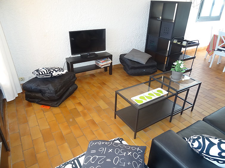 Apt 2 pièces 45 m2, aménagement simple et fonctionnel: entrée. Séjour avec 1 divan-lit double et TV. Sortie sur la terrasse. 1 chambre avec 2 lits (80 cm). Cuisine (4 plaques de cuisson, lave-vaisselle, congélateur). Salle de bains, WC séparé.
