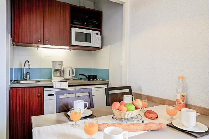 Le studio comprend 'une kitchenette équipée avec plaques de cuisson électriques, réfrigérateur, four à micro-ondes, cafetière électrique et lave-vaisselle. L'équipement comprend également un aspirateur, un téléphone (payant), une télévision et un mobilier de jardin sur la terrasse ou le balcon.
