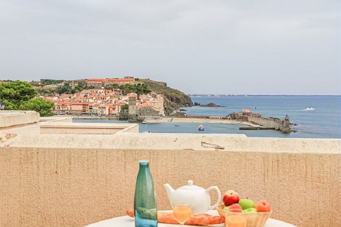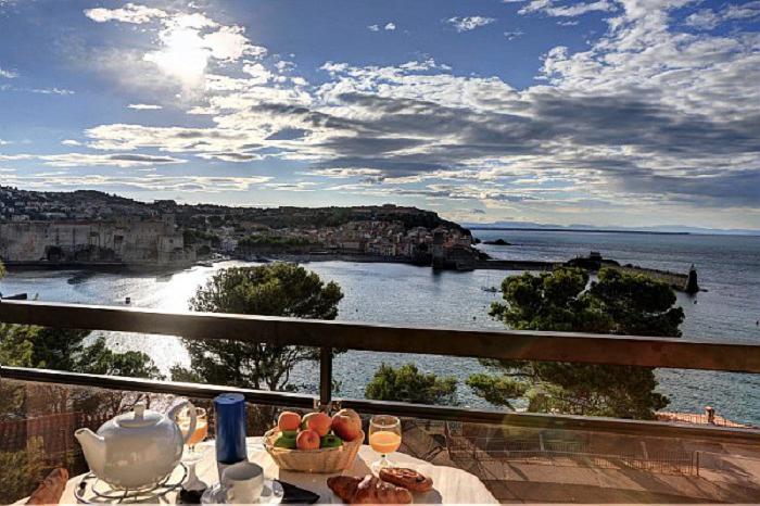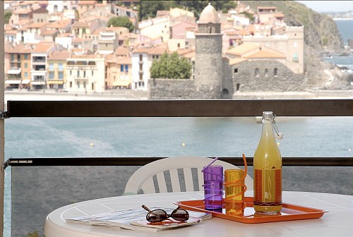 Pour avoir plus de détails et réserver cet hébergement, choisissez une date ci-dessus et cliquez sur voir l'offre ! Vous serez redirigé vers le site proposant la location.Séjour avec 1 lit 2 places + 2 lits superposés, balcon ou terrasse avec mobilier (vue mer et Collioure)