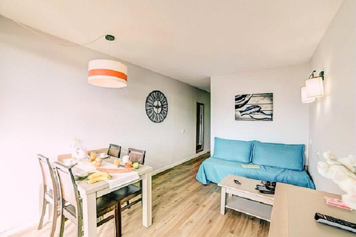 Le studio comprend une kitchenette équipée avec plaques de cuisson électriques, réfrigérateur, four à micro-ondes, cafetière électrique et lave-vaisselle. L'équipement comprend également un aspirateur, une télévision, un téléphone (payant) et un mobilier d'extérieur sur la terrasse ou le balcon.