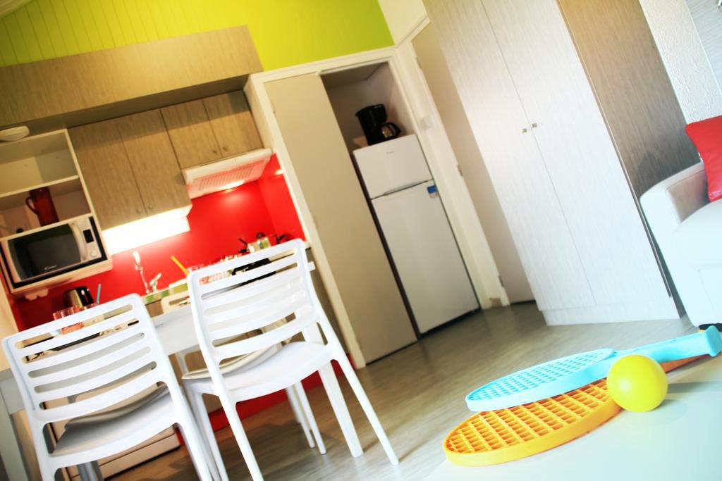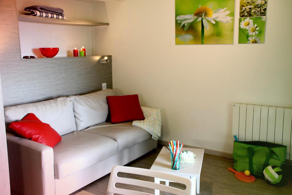 3 Pièces 5 Personnes de 34m²composé d'un séjour, d'un coin cuisine équipé, d'une chambre avec 2 lits simples, d'une salle d'eau avec WC, d'une chambre à l'étage avec 3 lits simples, et d'une terrasse.oucomposé d'un coin cuisine équipé, d'un séjour-chambre avec canapé 2 couchages, d'une chambre avec 1 lit simple, d'une salle d'eau avec WC, d'une chambre à l'étage avec 2 lits simples, salle d'eau avec WC et terrasse.Possibilité d'ajouter un lit bébé : sur demande auprès de notre service réservation
