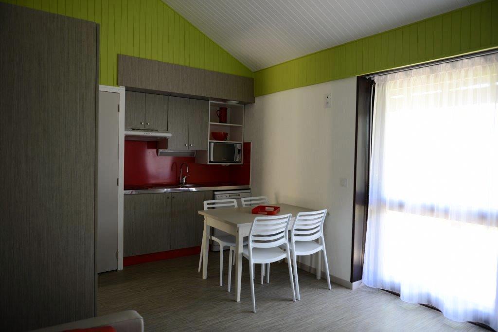 3 Pièces 5 Personnes de 34m², composé d'un séjour, d'un coin cuisine équipé, d'une chambre avec 2 lits simples, d'une salle d'eau avec WC, d'une chambre à l'étage avec 3 lits simples, et d'une terrasse. ou composé d'un coin cuisine équipé, d'un séjour-chambre avec canapé 2 couchages, d'une chambre avec 1 lit simple, d'une salle d'eau avec WC, d'une chambre à l'étage avec 2 lits simples, salle d'eau avec WC et terrasse. Possibilité d'ajouter un lit bébé : sur demande auprès de notre service réservation A noter: Il faut au minimum 4 payants (payant = personne à partir de 2 ans)
