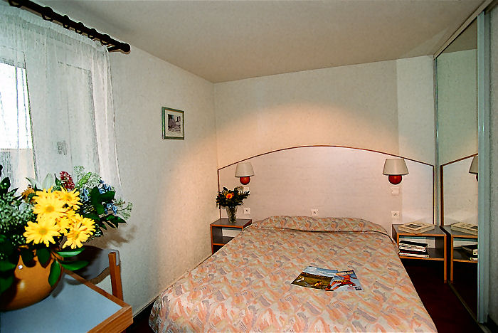 Logement 3 pièces 6 pers. : 44 m2 + terrasse de 9,5 m2 séjour-chambre (1 lit), 1 chambre (2 lits de 70 cm). A l'étage, 1 chambre (2 lits) et 1 espace sommeil (1 lit de 80 cm) en mezzanine. Possibilité de rajouter 1 lit pliant pour bébé de moins de 2 ans.