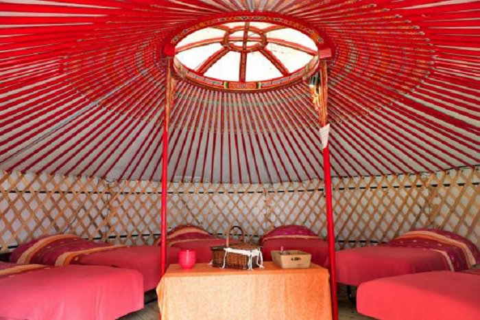 Yourte mongole de 30m² pouvant accueillir 7 personnes.Elle est composé d'une unique pièce avec un coin repas, et 7 lits simples.A savoir : La yourte ne possède pas d'accès à l'eau, ni de sanitaires. Vous devrez vous rendre aux bloc sanitaire situé à proximité (possédant douches, toilettes et lavabos).Pour des raisons de sécurité, le logement est non-fumeur.