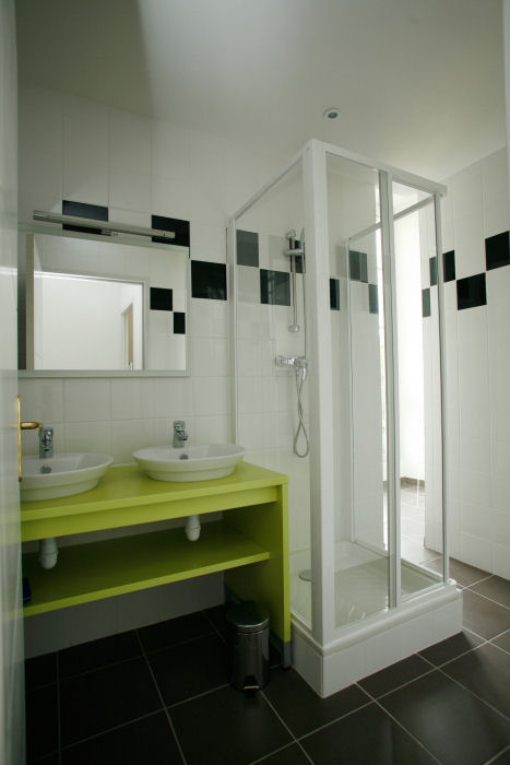 60m2, S?jour avec canap? gigogne 2 chambres + 1 cabine avec soit : - 2 lits doubles + 2 lits superpos?s - 2 lits doubles + 2 lits simples Kitchenette ?quip?e (plaque vitroc?ramique, micro-ondes/gril, lave-vaisselle) Salle de douche avec WC ou WC s?par