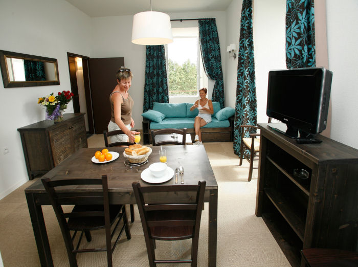 Appartement de 30 à 35m² de 2 pièces pour 4 personnes composé d'un séjour avec canapé lit gigogne pour 2 personnes, d'une chambre avec lit double ou 1 lit (120) et 1 lit (80) mezzanine, d'une kitchenette équipée et d'une salle de douche avec WC. A noter : si vous optez pour une formule Court séjour : La formule Court séjours « Nuits Cosy » comprend : le linge de lit et le linge de toilette, les lits faits à l?arrivée, la télévision et le ménage quotidien