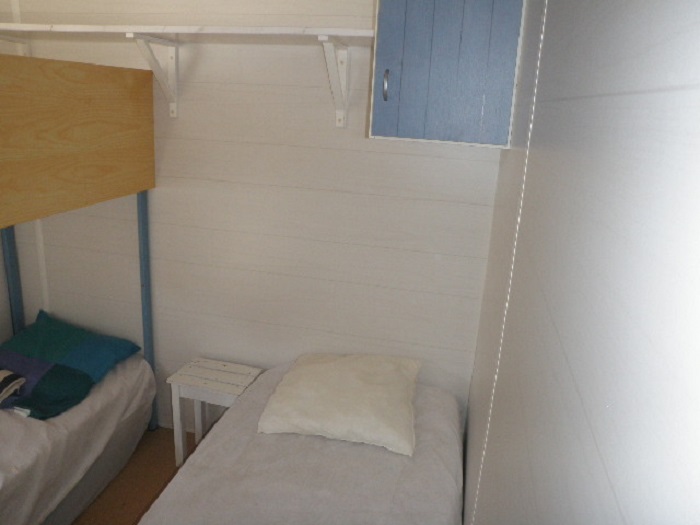 Pour avoir plus de détails et réserver cet hébergement, choisissez une date ci-dessus et cliquez sur voir l'offre ! Vous serez redirigé vers le site proposant la location.Chalet 3 pièces de 24 m² pour 5 personnes composé d'un coin cuisine, d'un coin salon, d'une chambre avec 1 lit double (140x190), d'une seconde chambre avec 1 lit superposé (80x190) et 1 lit simple (80x190), d'une salle de bain avec WC et d'une terrasse couverte.
