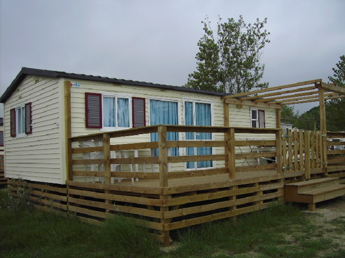 Mobil Home 3 pièces 4 personnes de 26 à 30m² comprenant un salon avec canapé lit convertible (en 1 ou 2 couchage au choix), une chambre double, une chambre avec deux lits simples, un coin cuisine équipé, une salle de douche avec WC séparé et une terrasse en bois.A noter : possibilité d'ajouter 2 personnes supplémentaires avec un supplément de 20 à 50? / personne.