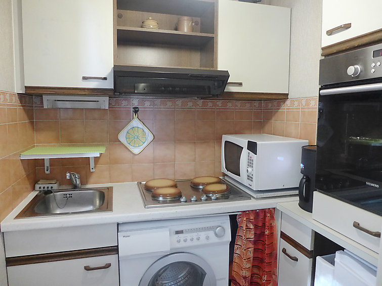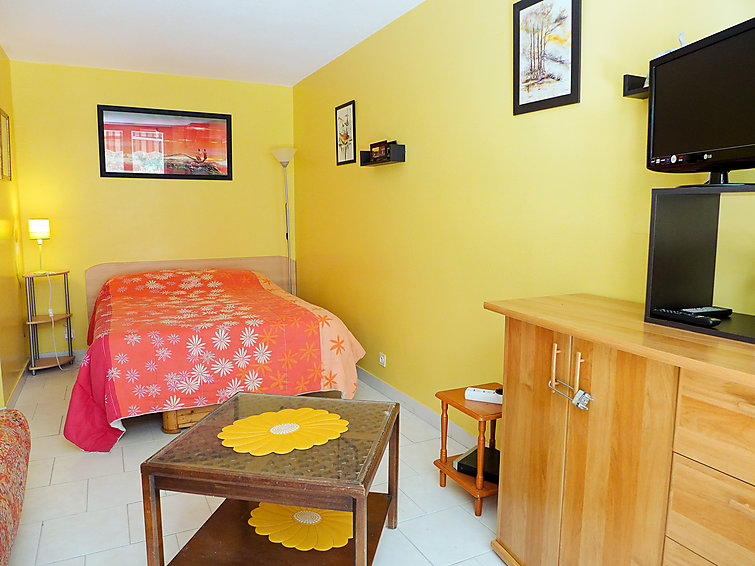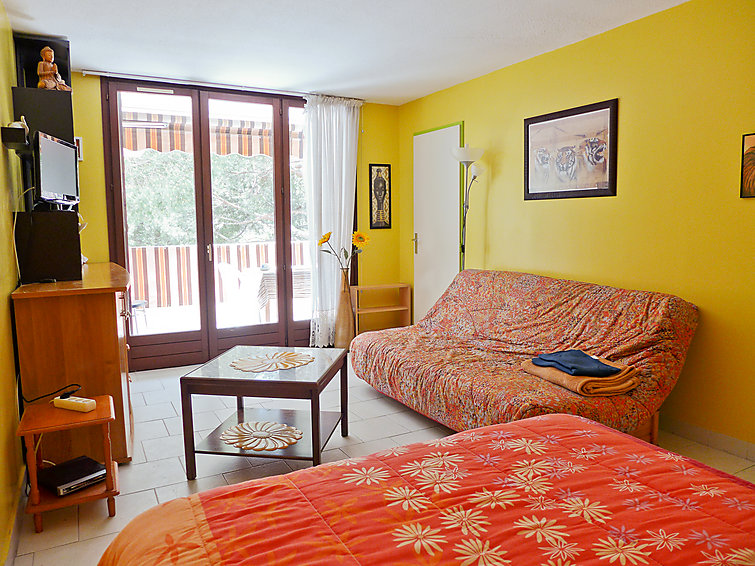 "La Miougrano" studio 24 m2 au 2ème étage. Aménagement fonctionnel et agréable: séjour/chambre à coucher avec 1 divan-lit double (1 x 120 cm), 1 grand-lit (1 x 140 cm), TV (écran plat). Sortie sur le balcon. Petite cuisine (4 plaques de cuisson, four, four micro-ondes, cafetière électrique). Bain/WC. Balcon. Mobilier de balcon. Vue sur le jardin. A disposition: lave-linge, fer à repasser. Veuillez noter: TV seulement FR. Détecteur de fumée.
