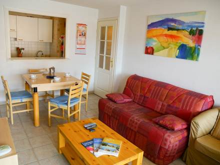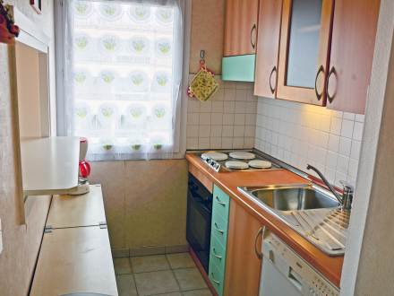 Pour avoir plus de détails et réserver cet hébergement, choisissez une date ci-dessus et cliquez sur voir l'offre ! Vous serez redirigé vers le site proposant la location.Apt 2 pièces 37 m2 au 3ème étage, aménagement agréable: séjour/salle à manger avec 1 divan-lit (130 cm, longueur 190 cm), TV (satellite). 1 chambre avec 1 grand-lit (1 x 140 cm, longueur 190 cm). Cuisine (4 plaques de cuisson, four, lave-vaisselle). Douche/WC. Terrasse, situation nord-ouest. Vue sur la localité. A disposition: lave-linge. Garage No 20.