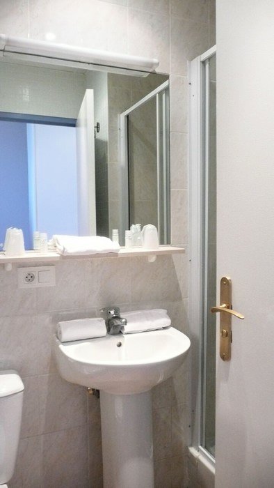 Chambre de 17m² pour 3 Personnes composée d'un lit double et d'un lit simple et d'une salle de bain complète avec douche.