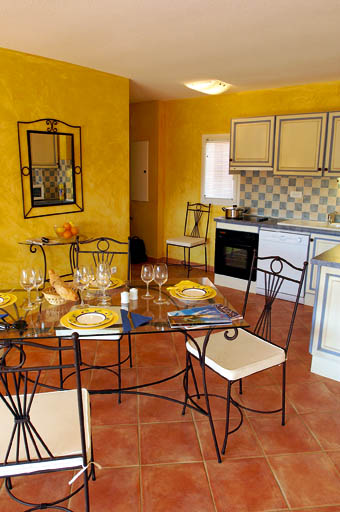Appartement avec coin cuisine équipé de plaques vitrocéramique, d'un micro-ondes, d'un four, d'un lave-vaisselle et de l'ensemble des ustensiles de cuisine. Tous les couchages sont fournis avec couvertures et oreillers. Terrasse avec mobilier.La Formule Escapade comprend : le linge de lit et de toilette, les lits faits à l'arrivée, la télévision et le ménage quotidien.