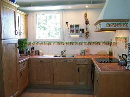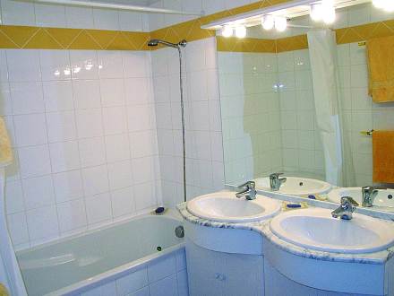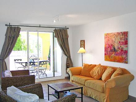 Apt 4 pièces 70 m2 au 1er étage, situation est, aménagement confortable: grand séjour/salle à manger 30 m2 avec TV (satellite), lecteur CD et DVD. Sortie sur la terrasse. 2 chambres, chaque chambre avec: 1 grand-lit. 1 chambre avec 1 x 2 lits superposés (80 cm). Cuisine ouverte (4 plaques de cuisson, four, lave-vaisselle, four micro-ondes, congélateur). Salle de bains, WC séparé. Chauffage électrique. Terrasse 10 m2, couverte. Meubles de terrasse. A disposition: lave-linge. Place de parking No 2.