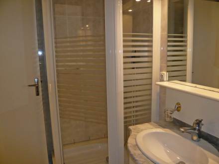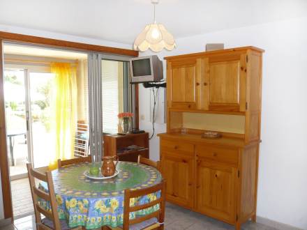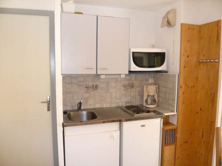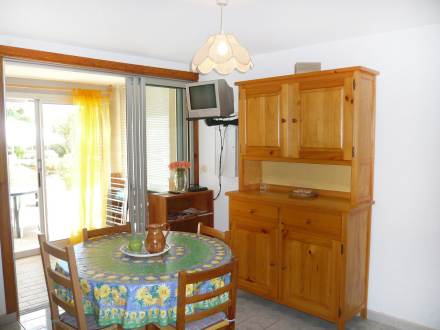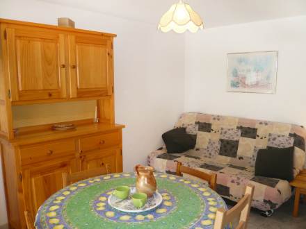 Apt 2 pièces 28 m2, au rez-de-chaussée: séjour/salle à manger avec 1 divan-lit (140 cm), TV. 1 chambre avec 1 lit (140 cm). Coin cuisine (2 plaques de cuisson, four). Douche/WC. Terrasse 30 m2, situation sud-est. Meubles de terrasse, barbecue (portable). Place de parking. Veuillez noter: TV seulement FR. FR.