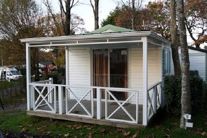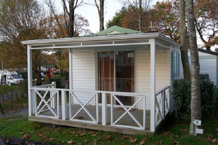 Chalet de 30m² de 3 pièces pouvant accueillir 5 à 7 personnes. Il est composé d'un séjour avec un canapé convertible pour 2 personnes (140cm), d'une chambre avec 1 lit double (140cm), d'une chambre avec 3 lits simples (80cm) dont 1 superposé et d'une salle de bain avec douche et toilettes séparés. Terrasse. Possibilité d'installer un lit bébé, sur demande et à l'avance.