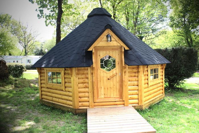 Lodge de 30m² de 3 pièces pouvant accueillir 6 personnes. Elle est composée d'un séjour avec coin cuisine ouvert sur la terrasse, d'une chambre avec 1 lit double, d'une chambre avec 2 lits simples et 2 lits superposés. Possibilité de mettre un lit bébé dans la chambre (sur demande). A noter : le lodge ne possède pas de point d'eau. Les sanitaires sont à 20 mètres des locations.