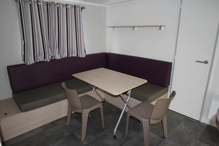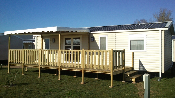 Pour avoir plus de détails et réserver cet hébergement, choisissez une date ci-dessus et cliquez sur voir l'offre ! Vous serez redirigé vers le site proposant la location.Mobil Home 3 Pièces 4 Personnes d'environ 29m² composé d'un coin cuisine équipée, d'un coin salon avec télévision, d'une chambre avec 1 lit double, d'une chambre avec 2 lits simples, d'une salle de douche et de WC. Terrasse en bois de 11m².