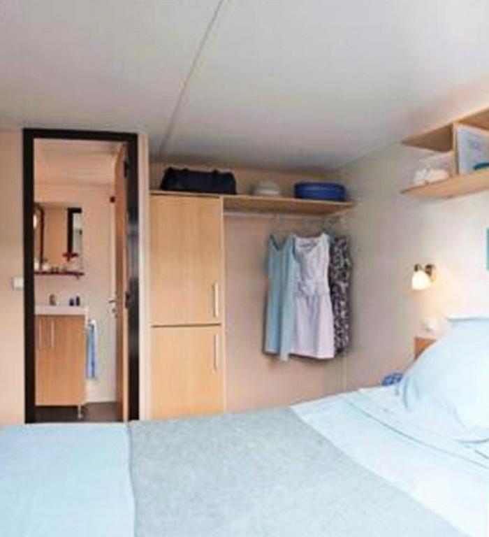 Pour avoir plus de détails et réserver cet hébergement, choisissez une date ci-dessus et cliquez sur voir l'offre ! Vous serez redirigé vers le site proposant la location.Mobil Home 3 Pièces 4 Personnes d'environ 27m² composé d'un coin cuisine équipée, d'un coin salon avec télévision, d'une chambre avec 1 lit double, d'une chambre avec 2 lits simples, d'une salle de douche et de WC. Terrasse en bois de 11m².
