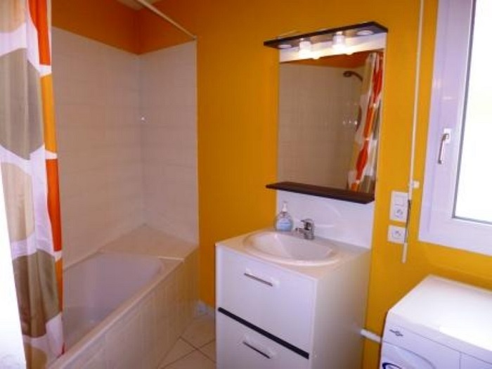 3 Pièces 4/6 Personnes de 57m² situé au 2ème étage, composé d'une cuisine équipée, d'un séjour avec canapé-lit 2 personnes, d'une chambre avec un lit double, d'une chambre avec 2 lits simples, d'une salle de bain avec baignoire, de WC séparés, d'une terrasse, d'une cave, d'un local commun pour vélos et d'une place de parking.