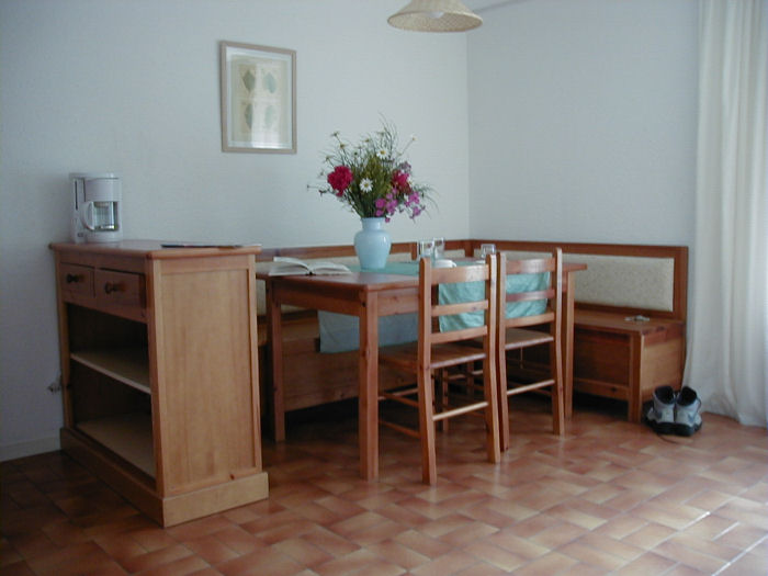 Pour avoir plus de détails et réserver cet hébergement, choisissez une date ci-dessus et cliquez sur voir l'offre ! Vous serez redirigé vers le site proposant la location.Superficie d'environ 51 m². Coin repas. Chambre avec lit double (140). Chambre avec 2 lits simples (2x90). Cuisine avec four multifonctions, plaques de cuisson, réfrigérateur. Salle d'eau avec douche. WC séparé. Terrasse.