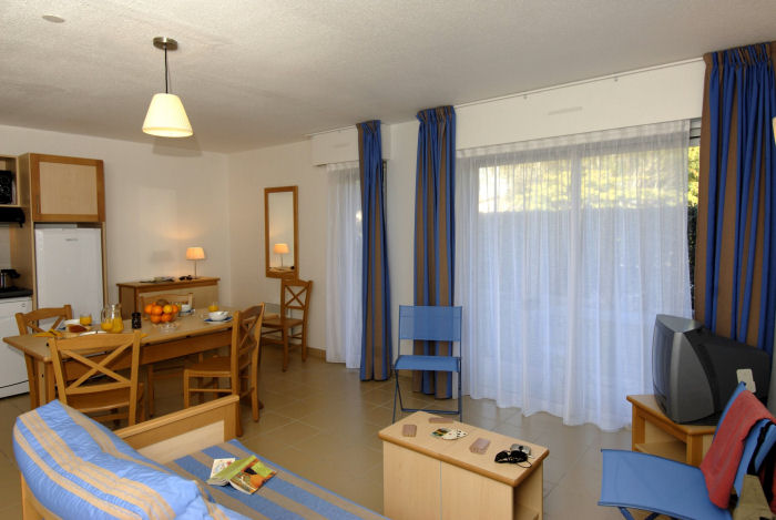 Studio de 2 personnes de 19m² environ composé d'un séjour avec 2 couchages, d'une kitchenette équipée, d'une salle de bain avec toilettes.